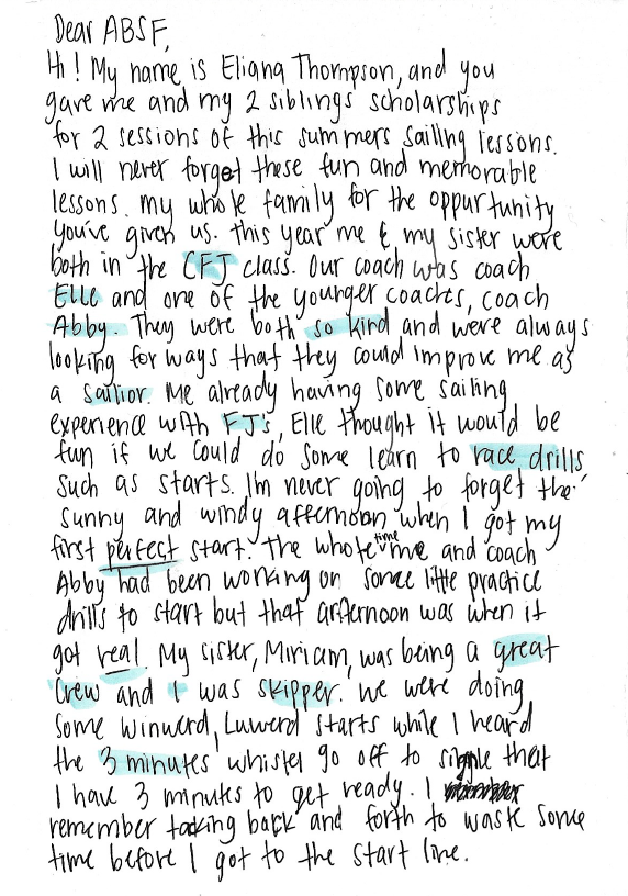 Eliana Thompson Summer Sailing Scholarship