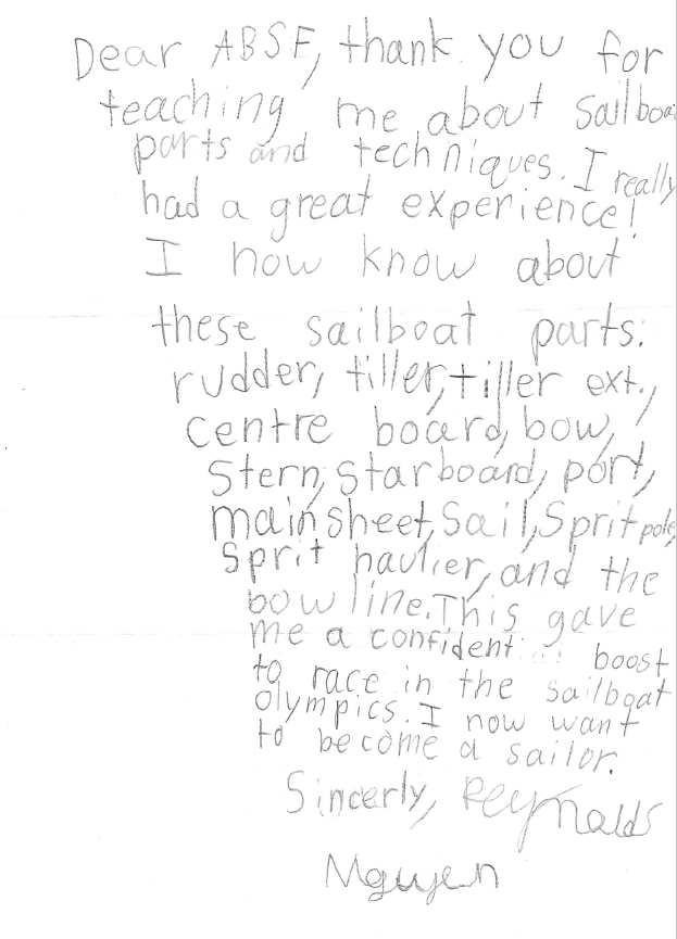 Scholarship Recipient Reynold Nguyen Summer Sailing